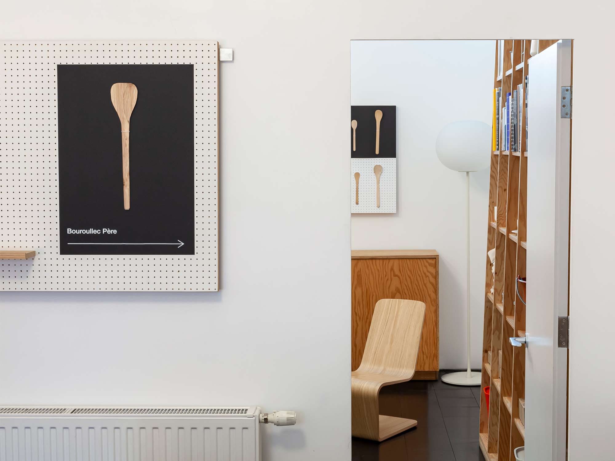 After retiring as a social worker a decade ago, Gabriel Bouroullec developed the habit of crafting spoons in his workshop in Brittany. He carves them by hand in various sizes and shapes from any bits of wood he can find. Gabriel is the father of the French designers Ronan and Erwan Bouroullec. The Shop held an exhibition of some spoons Bouroullec Père had made recently. The spoons were for sale; as they sold, they disappeared from the display. All proceeds from the sales went to the Emmaus charity, as chosen by Gabriel.