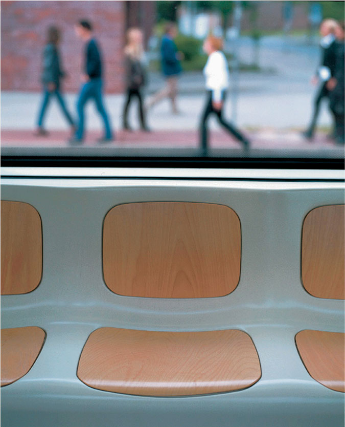 I was very unsure about handling a job of this scale but was persuaded to make a proposal and to take it step by step. We were a very small team, consisting of Colin Watson, Klaus Hackl and myself. Our approach was very simple: to design the tram for the passengers and to make every effort to make it something more enjoyable than a piece of civic equipment. I’d always loved London’s old double-decker bus, the Routemaster, which I think is still an unrivalled solution to urban public transport (with Venice’s vaporetto a close second perhaps) and much of the design thinking for the Hanover tram was measured against it.
