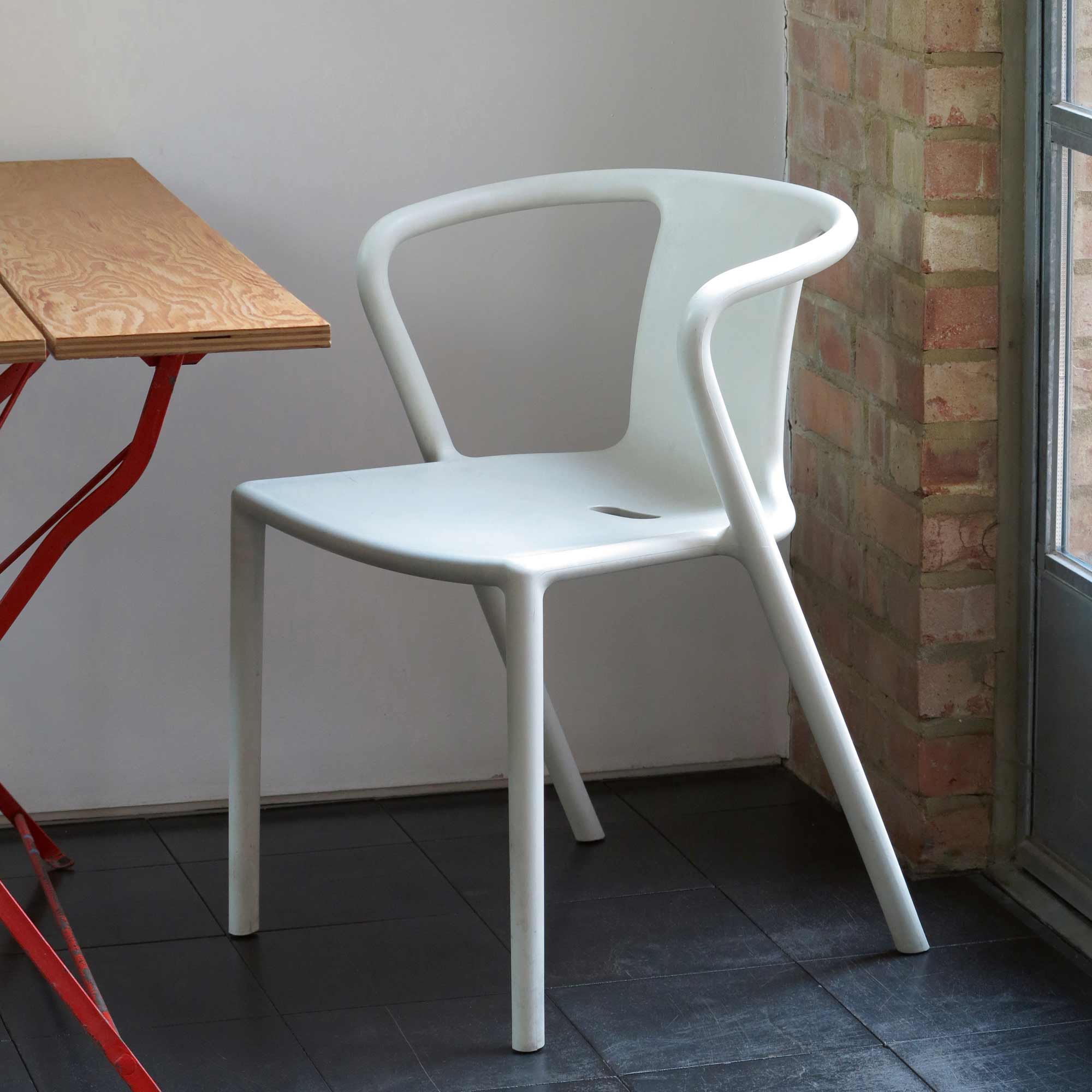 One of the most troublesome projects ever. Armchairs are always complicated, especially if they have to stack and if the design has to relate to an existing non-armchair. In this case we made four different design proposals before arriving at this one. The others were no good for various reasons like over-complex moulding requirements, structural issues or just because they didn’t look right. The ergonomics of the chair differ slightly from the original Air Chair, offering a bit more of an inclined sitting position for café situations.