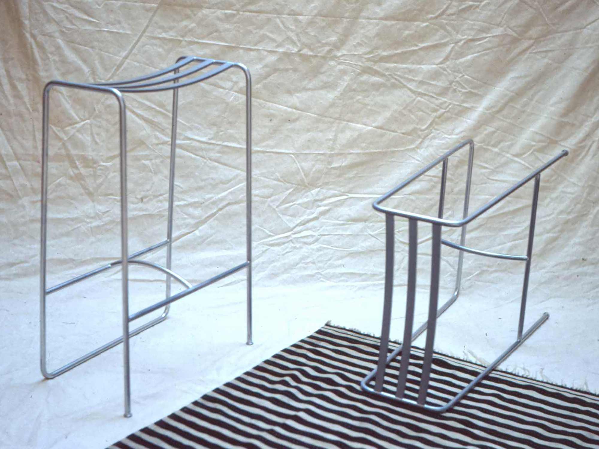 I designed the slatted stool in my first year at the Royal College in 1983. The original model had rather narrow seat slats and people mistook it for a towel rack! It was also so far as I remember the first design of mine to be produced in significant numbers. I modified the design for SCP, making the slats wider, but on the current production model they are narrower again. It was a simple structural exercise to bend a single length of tube and to brace it where necessary to provide a seat.