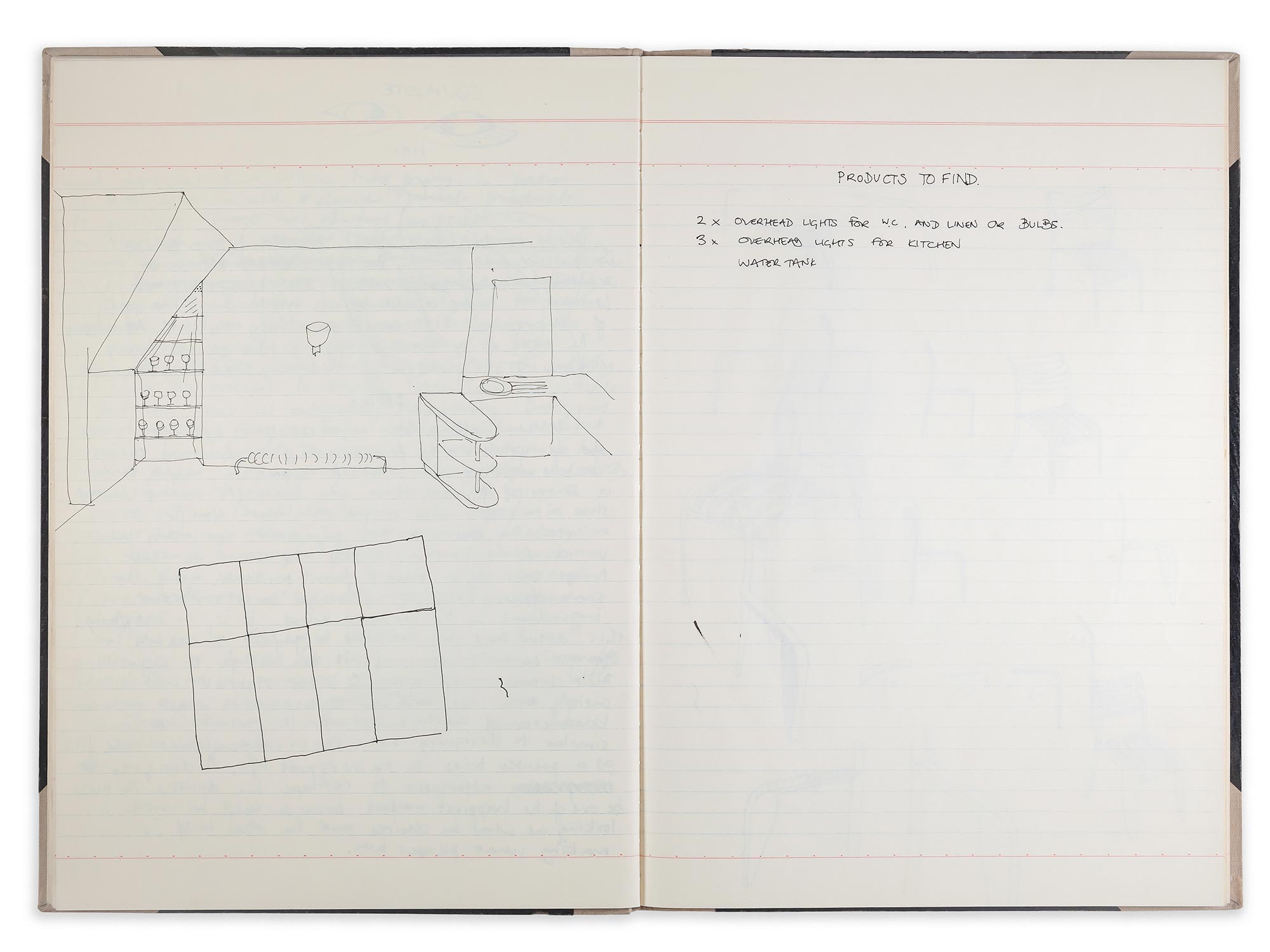 Jasper made sketches and lists for the apartment in a series of red notebooks like this one.