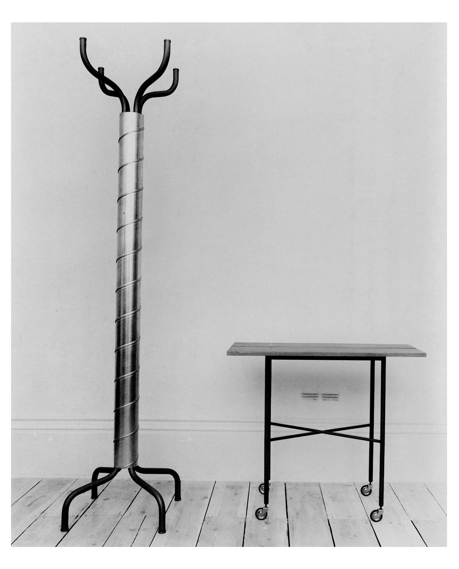 The photographs below show a bookshelf that Jasper designed for the apartment as well as the door handle (produced by FSB in 1989), coat stand (sold by Aram from 1987) and console table (produced by SCP from 1986). Taken by David Cripps, these pictures were among those showing Jasper’s work in The New Furniture by Peter Dormer (Thames & Hudson, 1987).