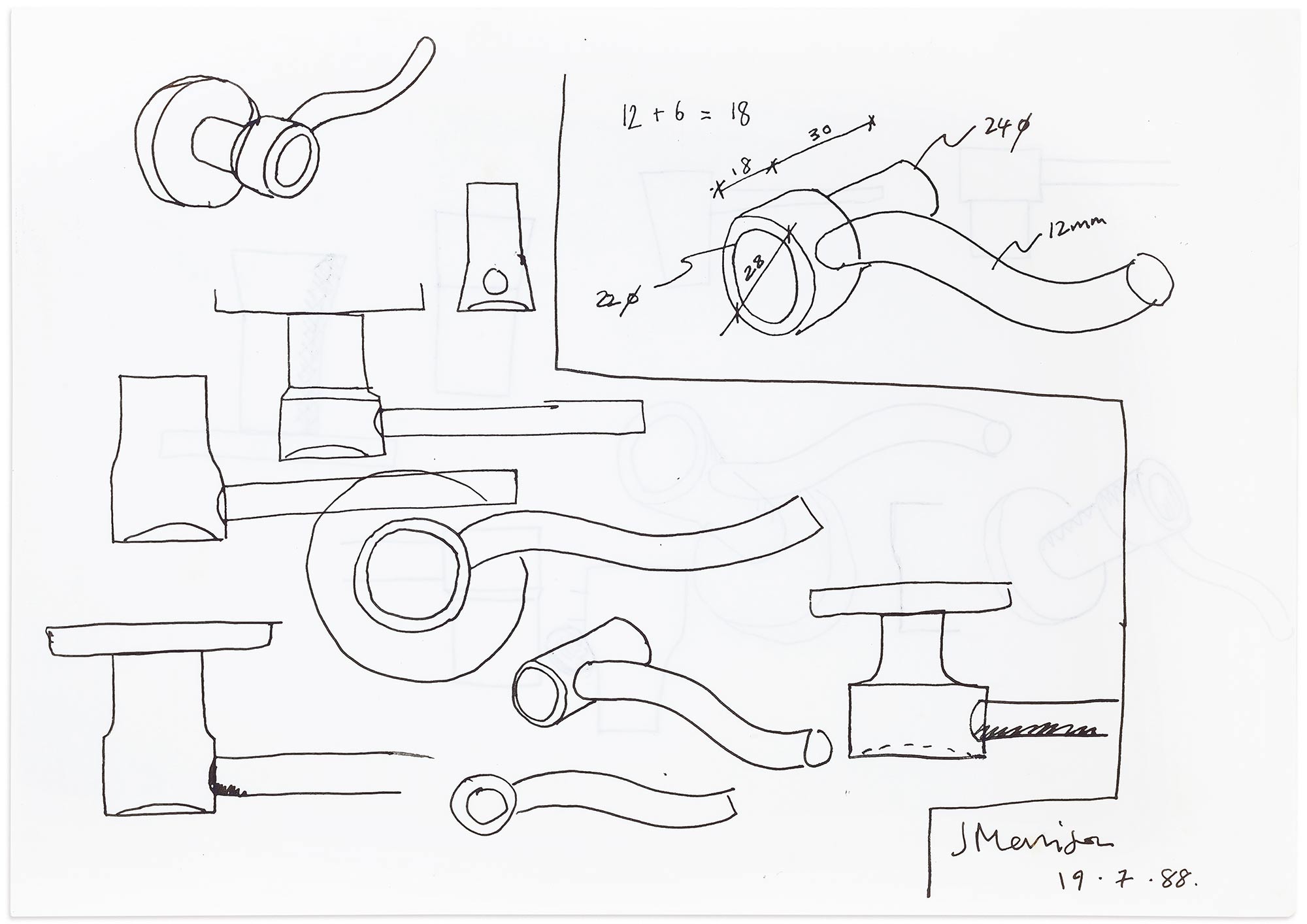 A sketch of the door handle in March 1986, in one of the notebooks Jasper filled while working on the apartment in Kensington.