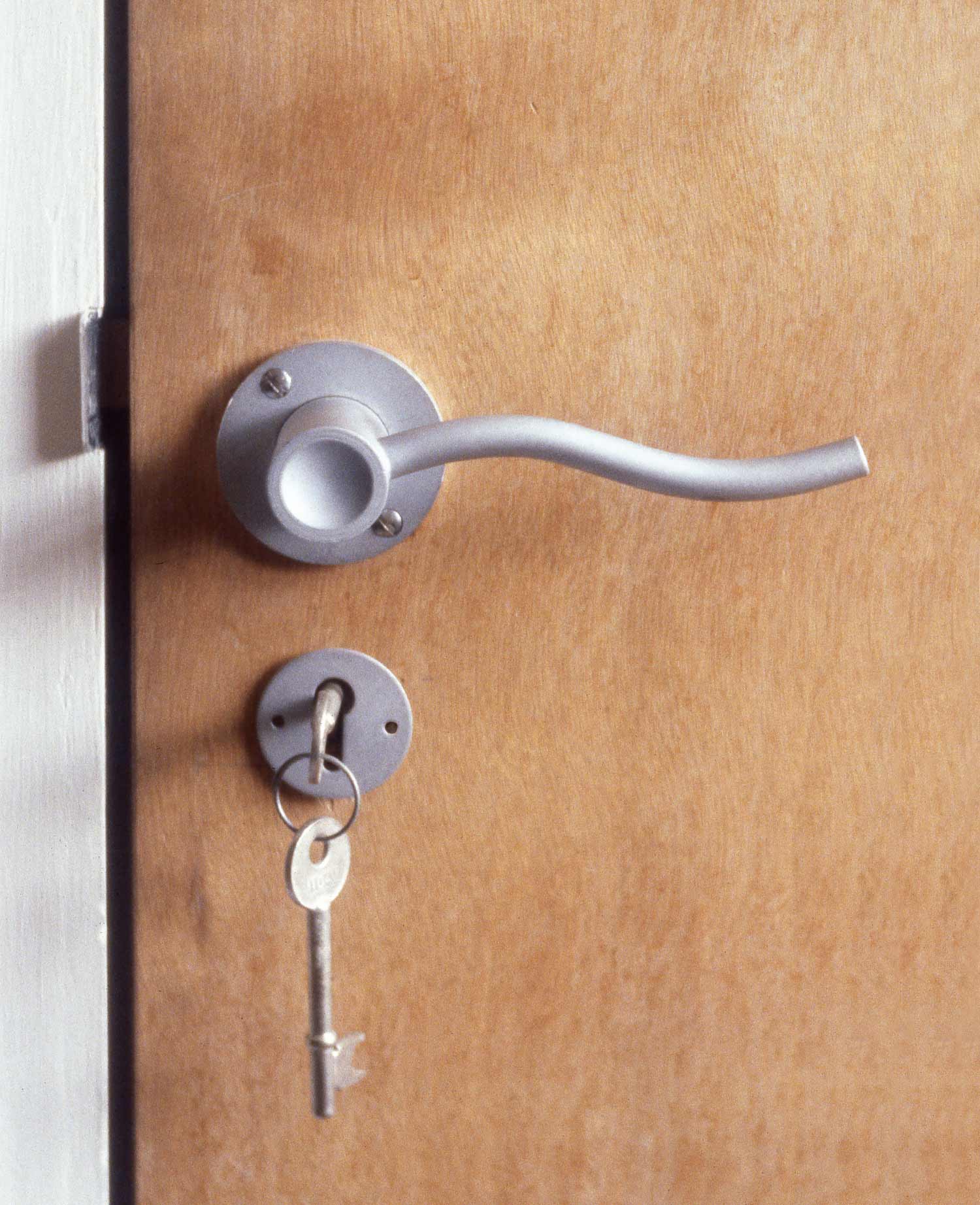 The photograph below was taken in the flat in Kensington. In the photograph, the keyhole has not been attached with screws to the door. Jasper remembers fixing it with bluetack for the photo shoot.